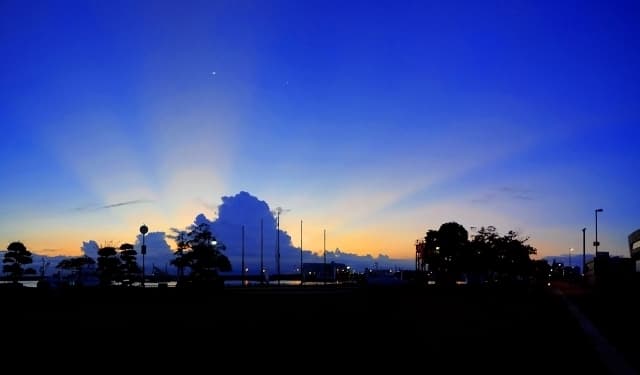 ただし、ブルーモーメントが現れるのは日の入り・日の出のおおよそ5分から長くても十数分程度と言われます。それ以上たつと日の入り後だと空が暗くなり、日の出後だと空が明るくなってきます。